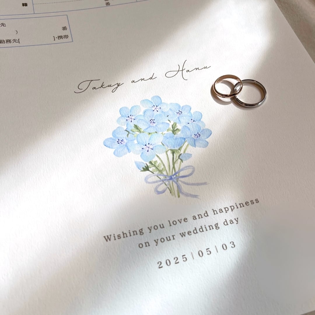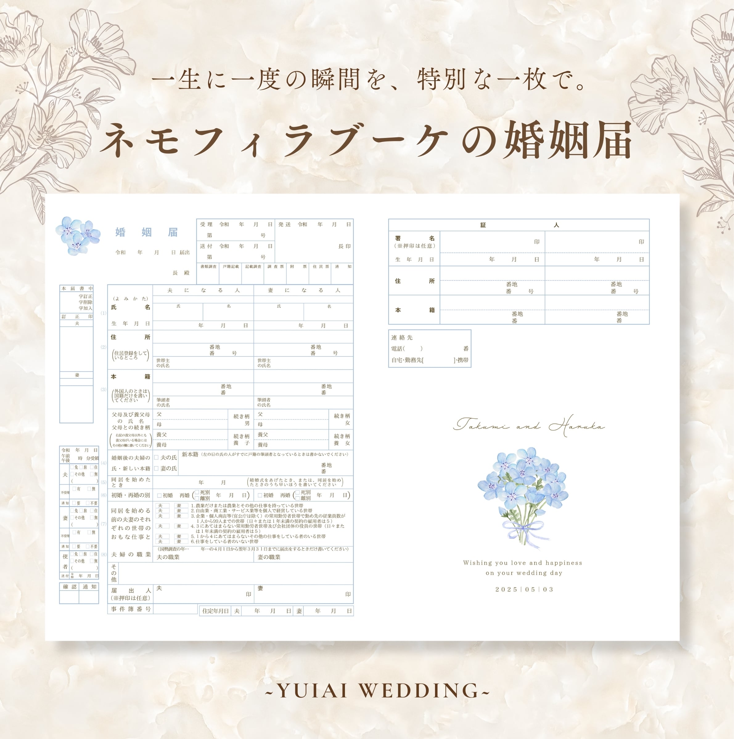 【名入れ】婚姻届|ネモフィラブーケの婚姻届|お花|春|シンプル|おしゃれ[役所へ提出できる婚姻届]