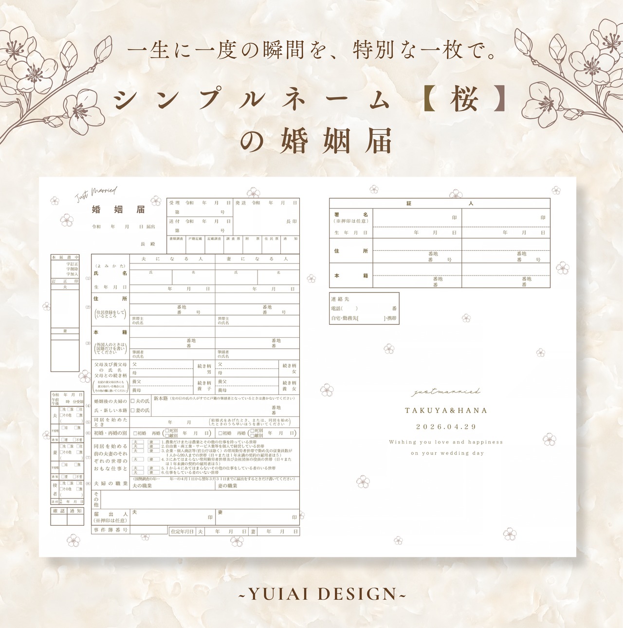 【名入れ】婚姻届|春|桜シンプルネームの婚姻届|シンプル|ナチュラル|おしゃれ[役所へ提出できる婚姻届]