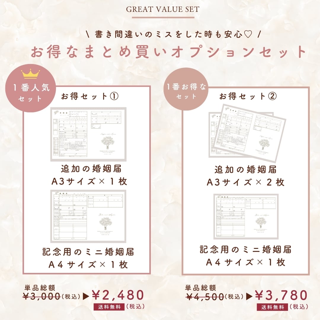 追加のA3サイズおよび、保管用のA4サイズはオプションからご注文いただけます。